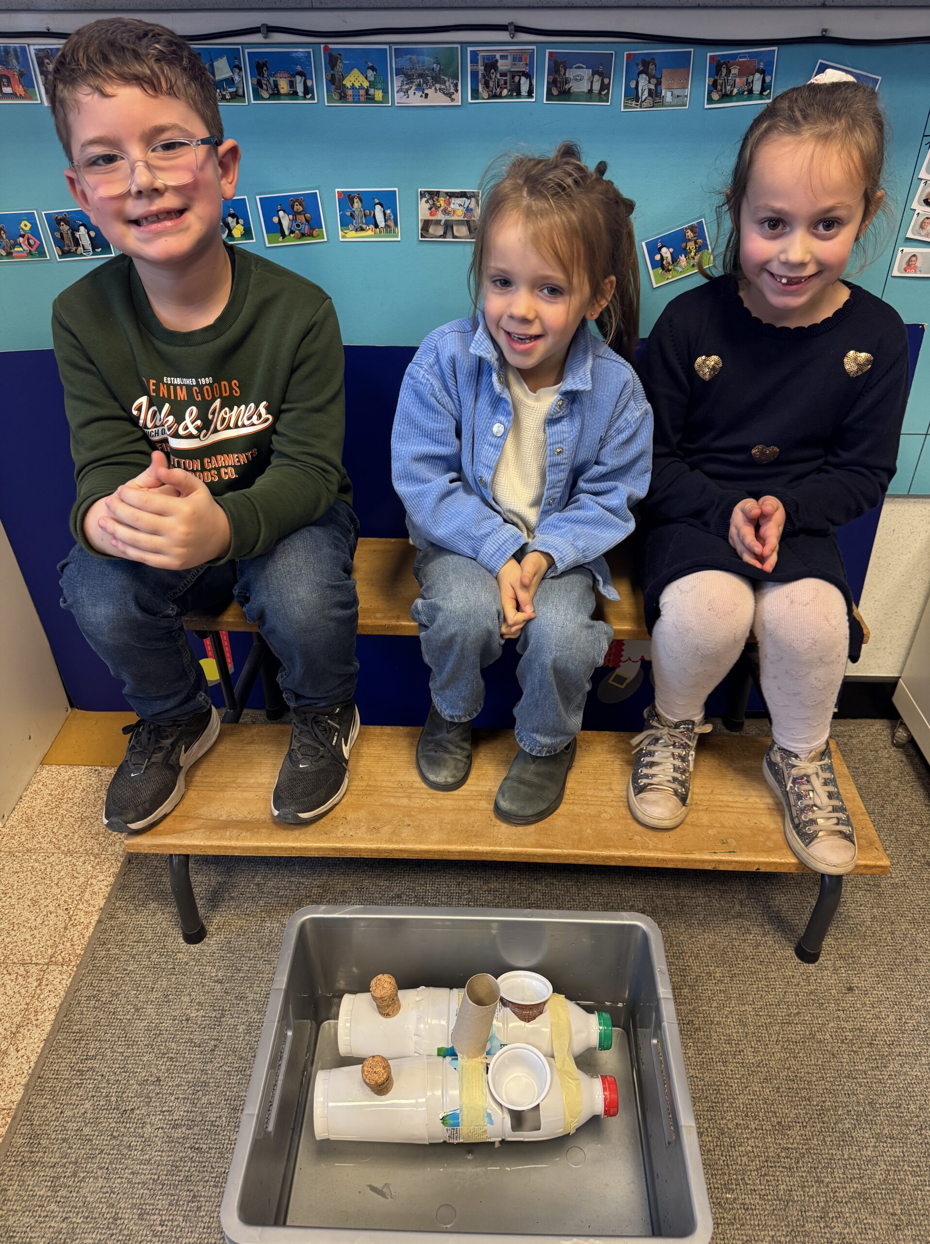 De kinderen hebben in groep een boot gemaakt die kan drijven met kosteloos materiaal.